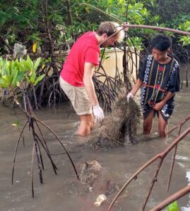 (WNA Asal Italia bersama para siswa/i sedang memungut sampah di Pantai Kolontobo) Lembata – Keindahan bawah laut Kabupaten Lembata mendapat apresiasi dari warga negara asing (WNA) asal Italia, Andrea, yang bersama rekannya